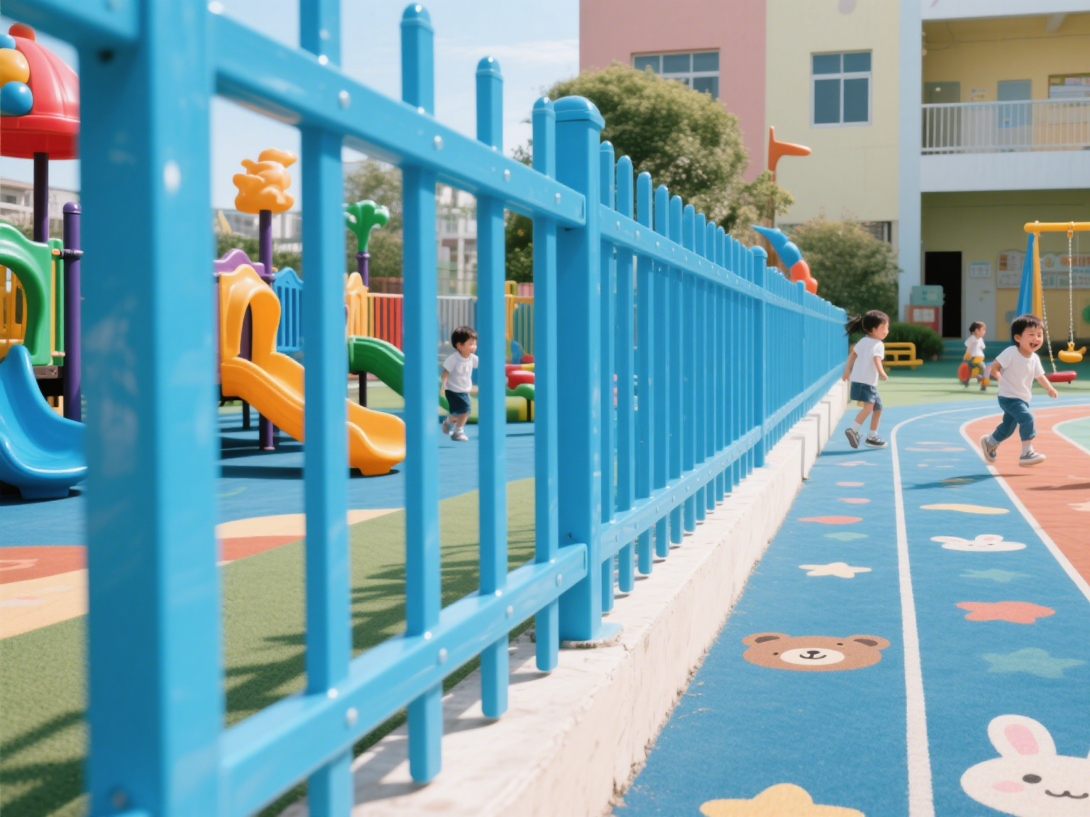 In the PVC Fence Panel upgrading project of a certain primary school in the UK, a “double – buffer” design was specially adopted: the fence columns are built in with honeycomb EVA buffer layers, and the outer layer is wrapped with 3cm – thick polyurethane crash pads, which can absorb 80% of the impact energy through testing. Color psychology experts participated in the color matching scheme: the fences around the teaching building adopt Morandi – toned lavender, which can reduce children’s heart rate by an average of 5 beats per minute according to research; the sports area fences are matched with vibrant orange and grass green to stimulate sports enthusiasm.