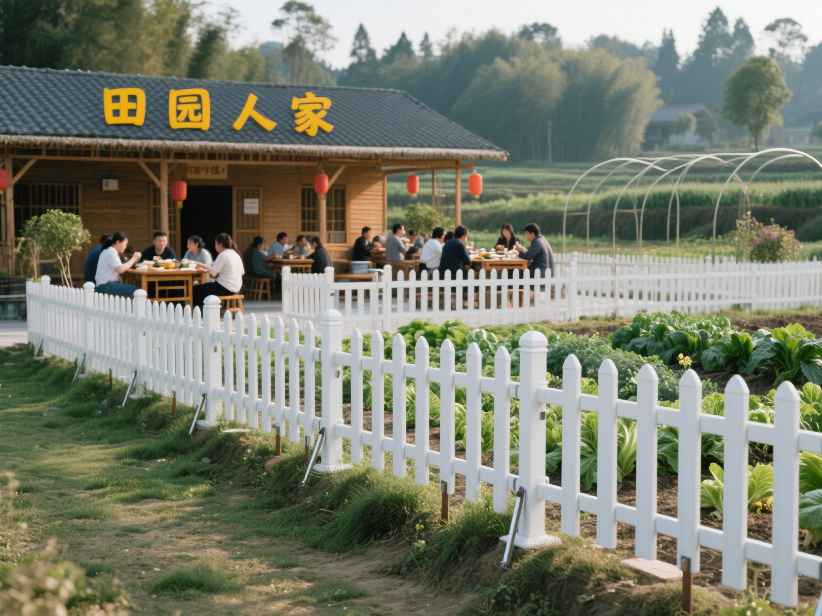 In the pastoral scenery on the outskirts of Chengdu, the “Pastoral Home” farmhouse resort has recently become particularly eye-catching due to a white PVC low fence. This fence, only 0.8 meters tall, not only cleverly separates the planting area from the dining area but also adds a touch of elegance and tidiness to the entire resort.