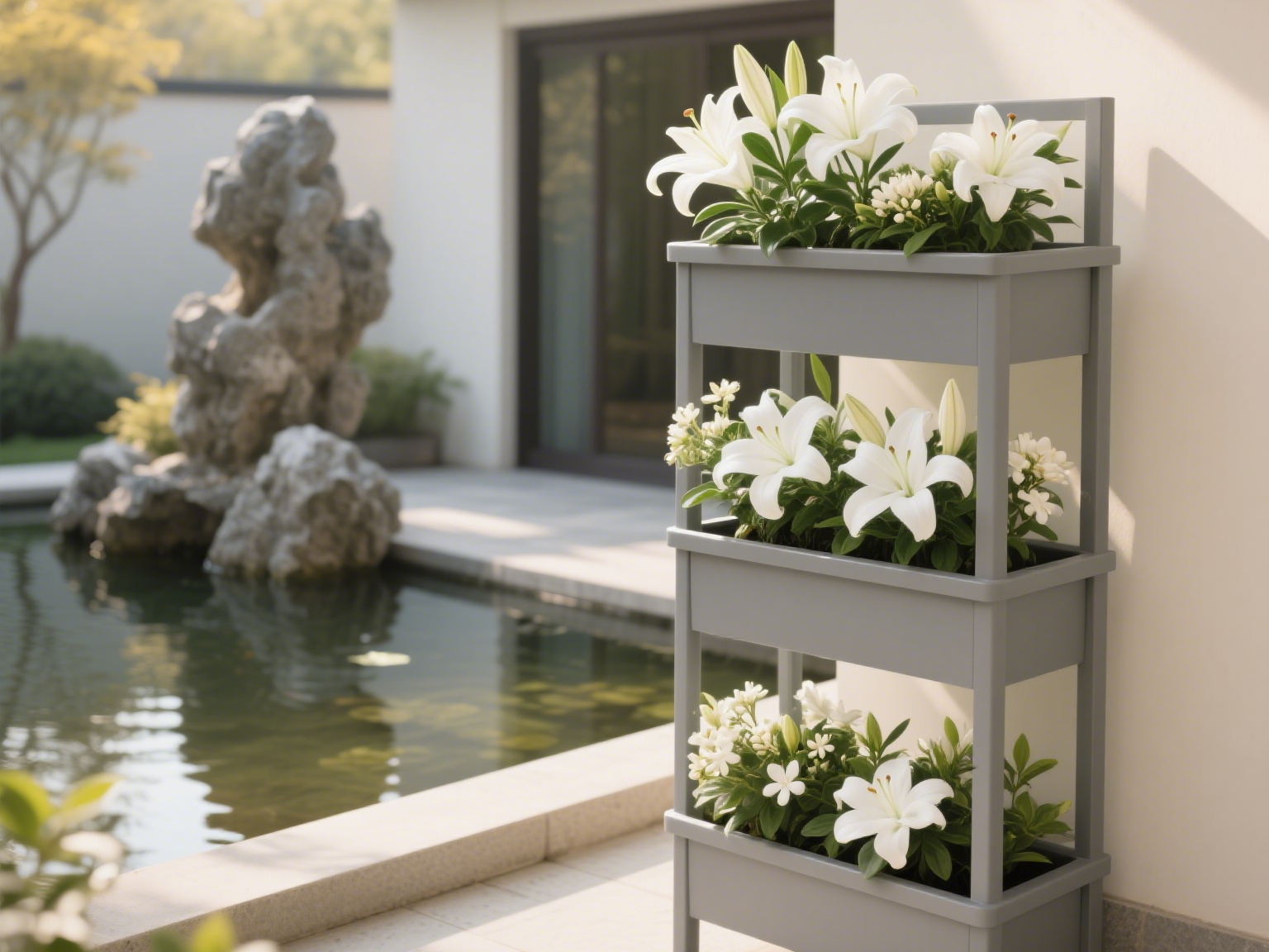 Beyond the above advantages, PVC flower stands also have significant strengths in exterior design. They come in diverse appearances and can be customized to suit different environments and needs. Today’s PVC flower stands not only feature simple and elegant modern styles but can also mimic the texture of wooden or metal flower boxes through special processes, adding beauty and vitality to urban landscapes and home environments. In public spaces such as city roads, squares, and parks, green belts composed of PVC flower boxes are often seen—neatly arranged and brightly colored, they add a beautiful touch to the city. In private spaces like home balconies and courtyards, PVC flower stands can blend seamlessly with various interior styles, whether a fresh and natural pastoral theme or a sleek and modern aesthetic, enhancing the overall visual appeal of the space.